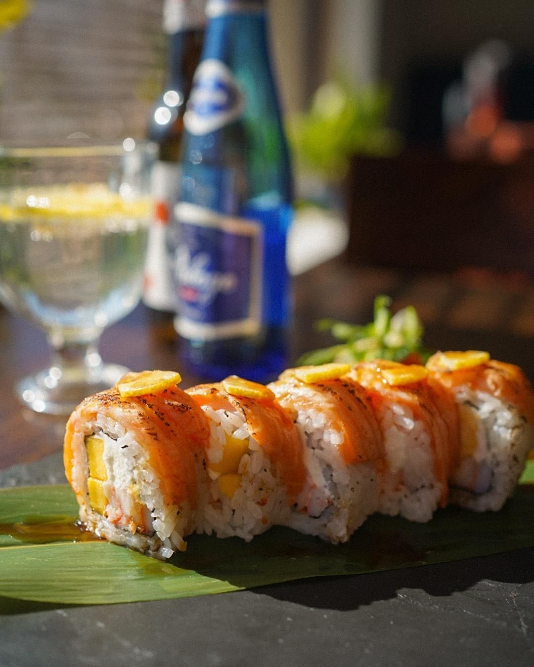 łosoś, tuńczyk, ryba maślana, dorada, okoń morski, krewetki parzone, pieczony węgorz, ośmiornica, małże św. Jakuba (surowe bądź grillowane)